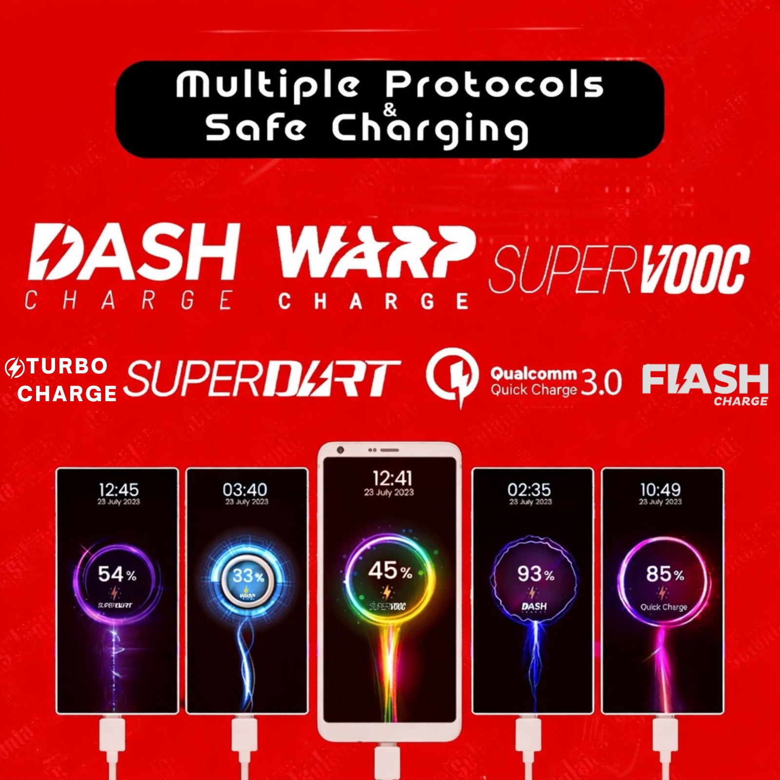 • Supported Technologies : SuperVooc, Vooc, Dash, Warp, SuperFast Charging, Quick Charge.