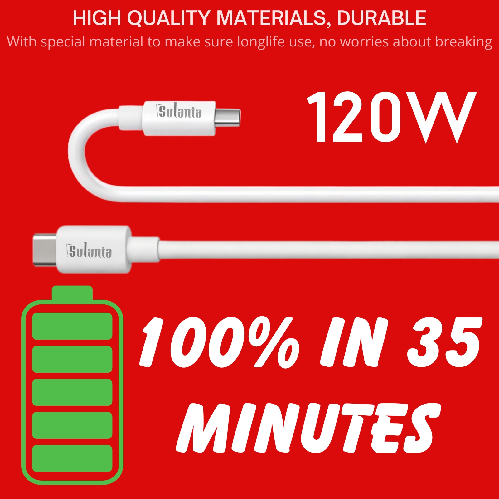 Sulania Orignal 120W 1 Meter USB Type C To Type C SuperVooc Datacable