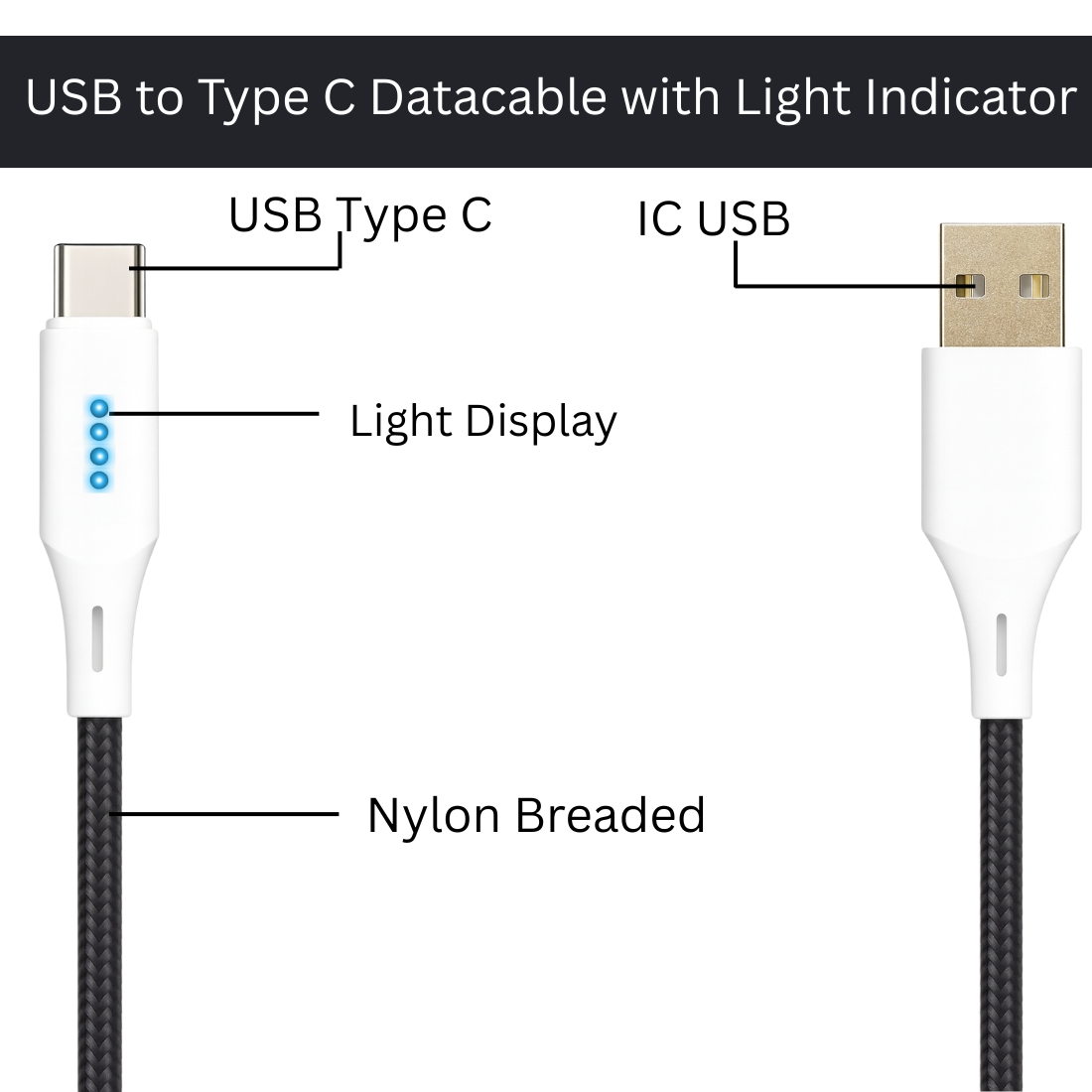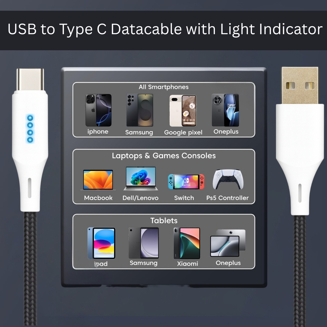 Type-A to Type-C data cable