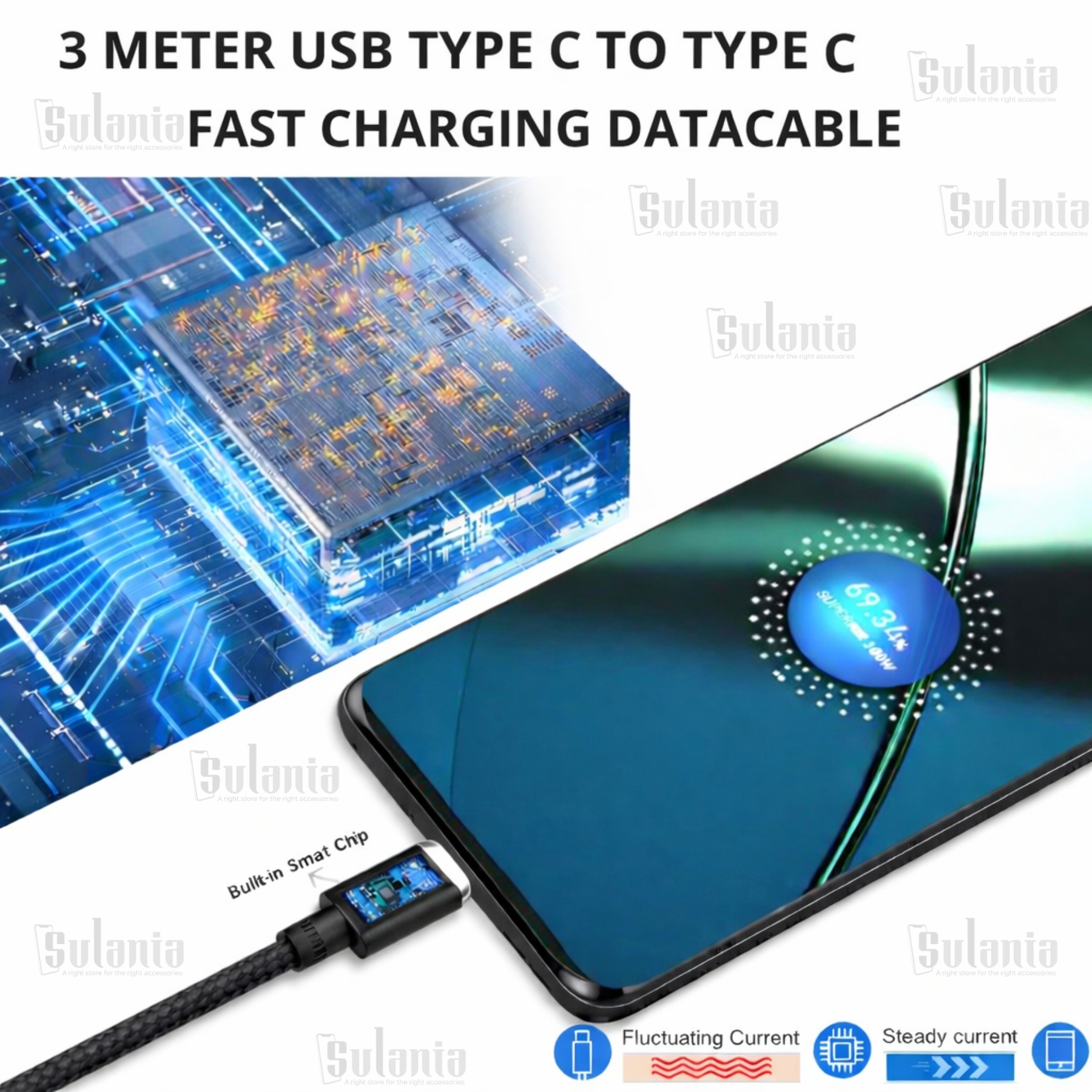 Upgrade your charging experience with the powerful 80W 3 Meter Type C to Type C Braided Black SuperVooc Datacable, specially designed for All Type C SuperVooc Devices and fully compatible with all Type-C enabled smartphones and gadgets. This high-performance charger delivers ultra-fast charging speed, ensuring your device powers up in no time. Its sleek Black design adds a premium look while maintaining durability and portability.3 meter Length give you confort to charge your phone everywhere in your home.
