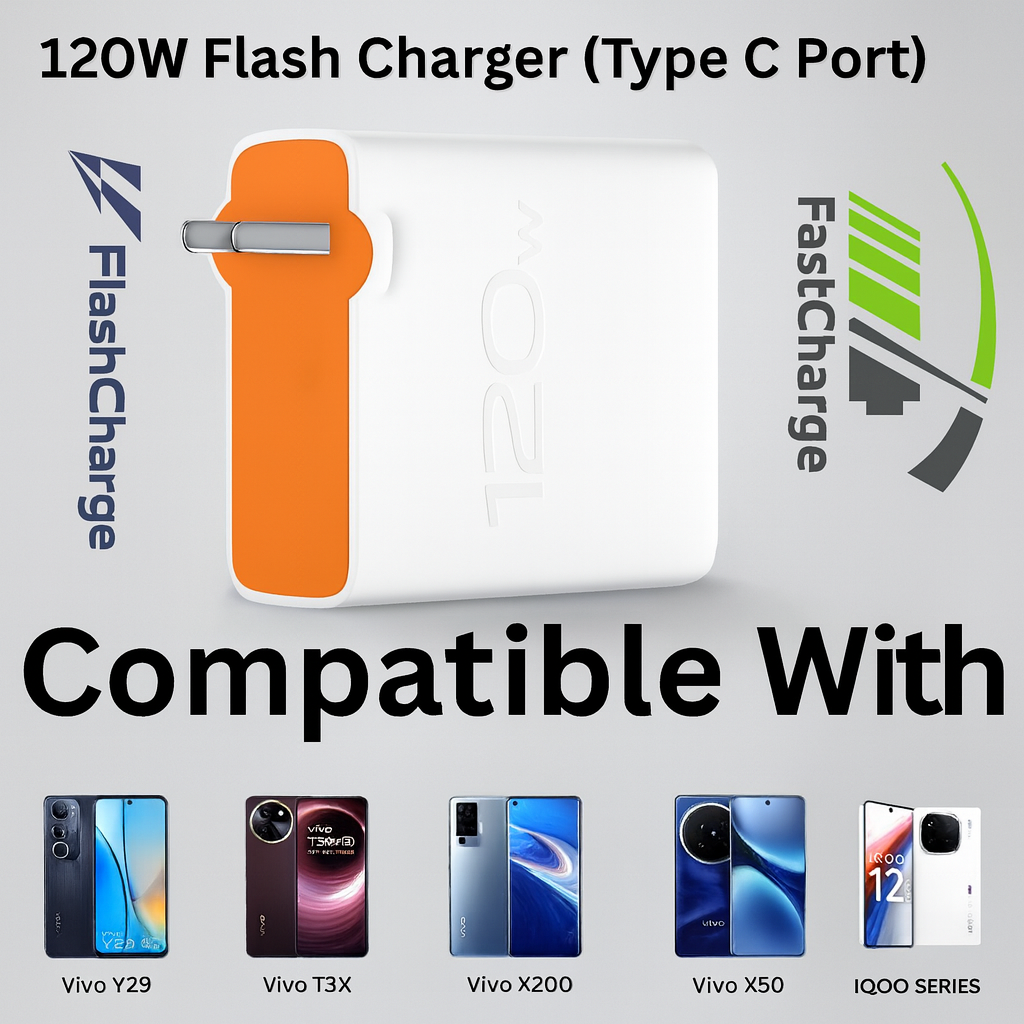This 120W Flash charger is designed to provide fast and efficient charging while protecting your phone’s battery health. It ensures safe power delivery to extend the lifespan of your device. The charger comes with a Type C to Type-C data cable that supports both charging and data transfer at speeds of up to 480 Mbps, allowing you to quickly sync your files while keeping your device powered.